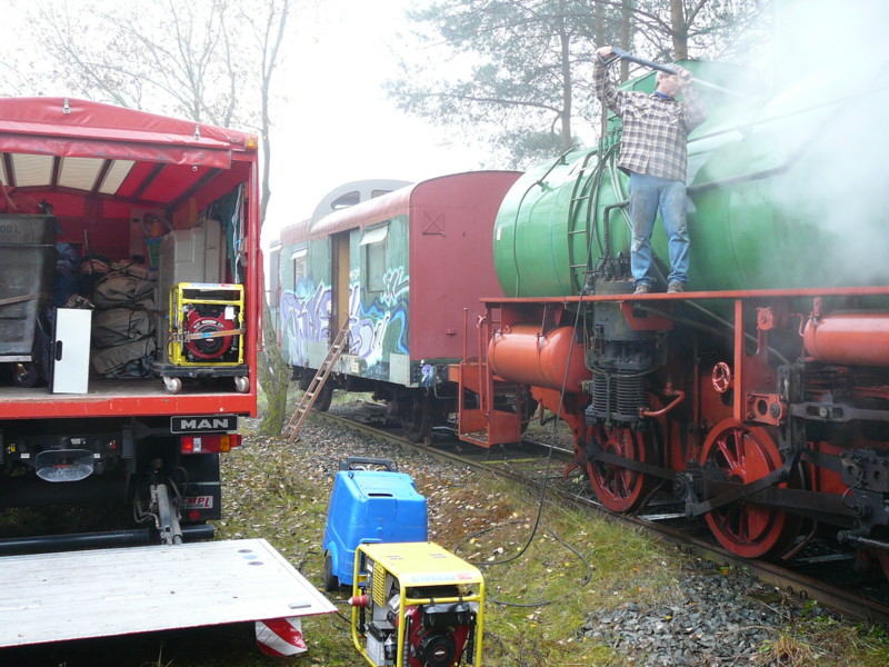 In Pudripp ging es los. Dort wurde gerade die Dampfspeicherlok