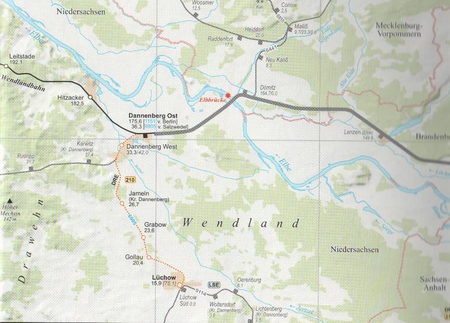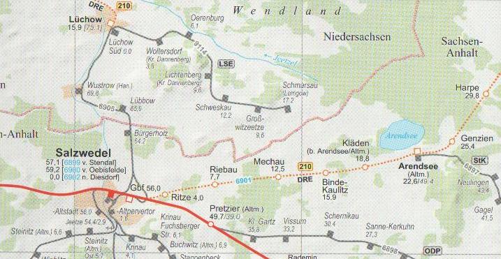 Bis Lüchow ist die Strecke frei. Der Gleiskörper ist noch bis Wustrow vorhanden, aber nicht befahrbar - starker Bewuchs.