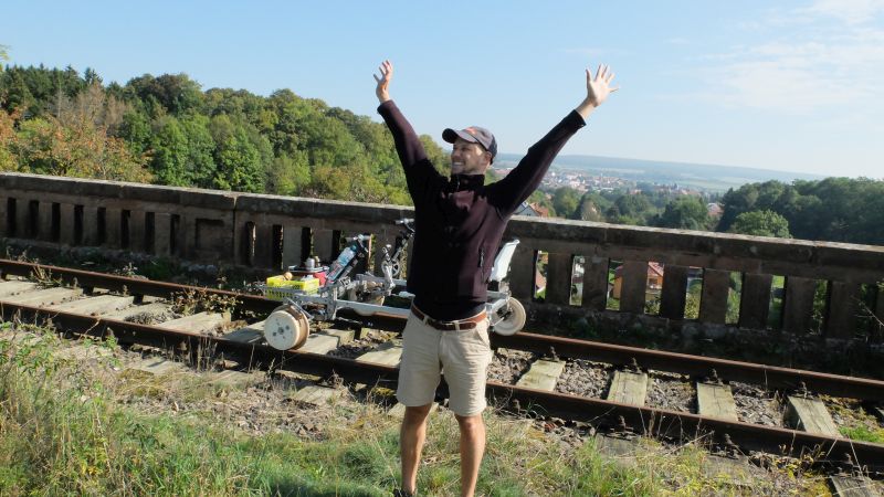 Am 18.09.2014 wollte er das Draisinefahren kennen lernen. Die Steigung