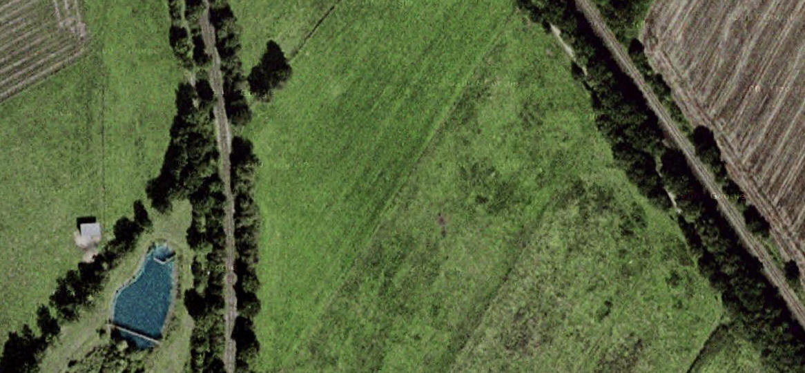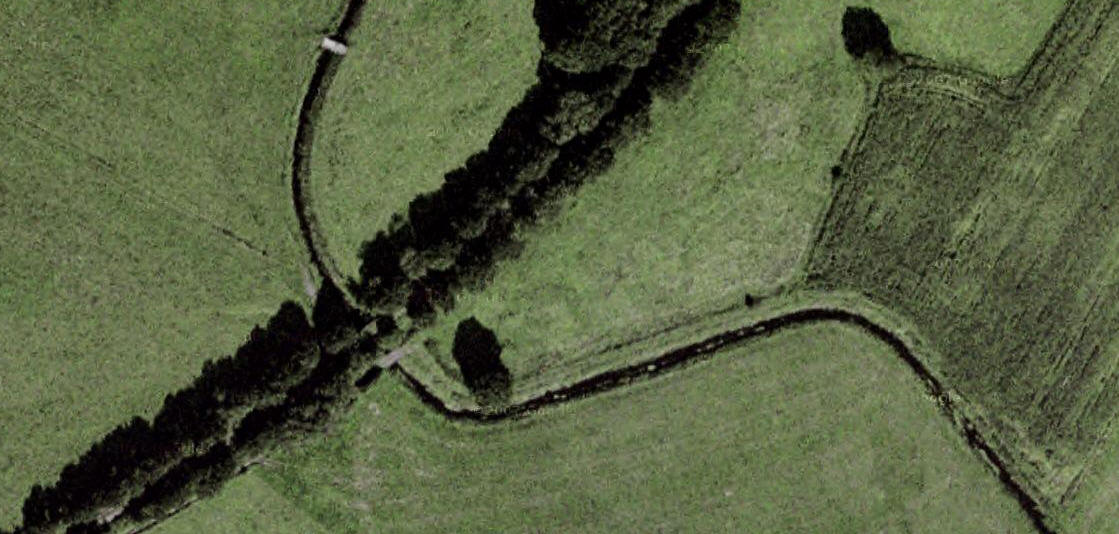 Luftaufnahme, wo an der Baumreihe zu sehen ist, dass sich dort