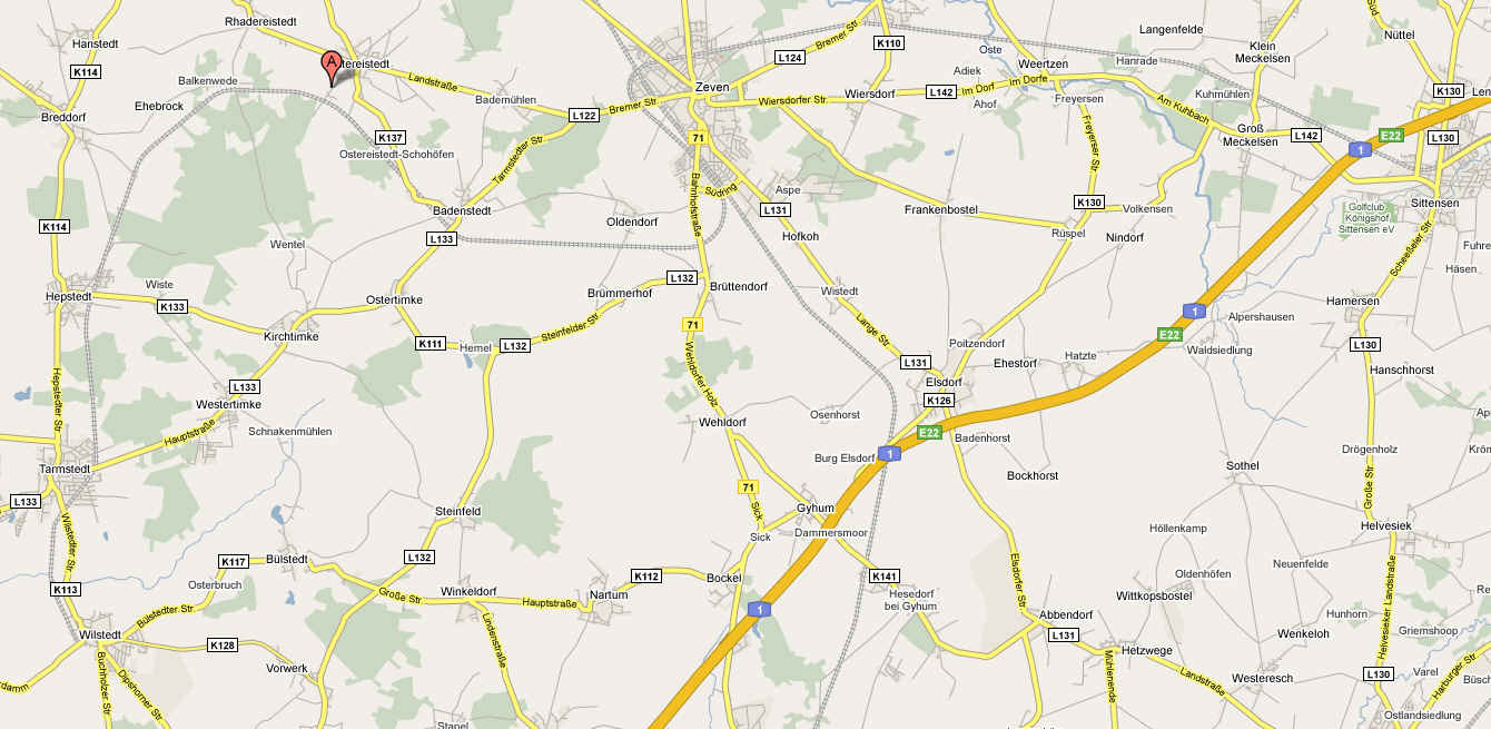 große Linkskurve vor Zeven, keine Walddurchquerung,