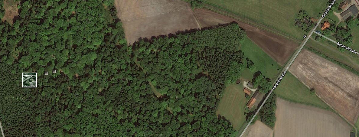 zwischen Wald + Feldern, |